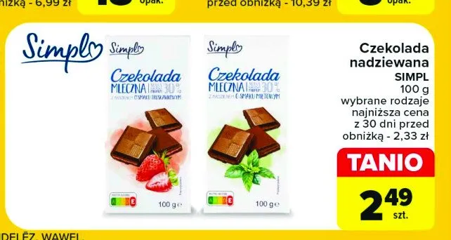 Przegl膮daj oferty promocyjne na produkt Czekolada mleczna 30% truskawkowa Simply