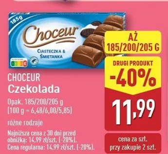 Gdzie mo偶na tanio kupi膰 produkt Czekolada mleczna ciasteczka & 艣mietanka Choceur?