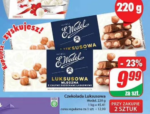 Przegl膮daj podobne oferty promocyjne do Czekolada mleczna z ca艂ymi orzechami E. wedel luksusowa!