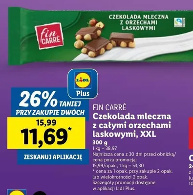 Przegl膮daj oferty promocyjne na produkt Czekolada mleczna z ca艂ymi orzechami laskowymi Fin carre