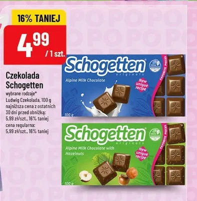 Zastanawiasz si臋, gdzie kupi膰 i ile kosztuje produkt Czekolada mleczna z orzechami Schogetten? Regularnie sprawdzamy, czy jest promocja na ten produkt w Biedronka, Lidl, Kaufland, Auchan, Netto, Makro i innych sklepach. Aktualnie posiadamy 4 oferty promocyjne na ten produkt. Ceny zaczynaj膮 si臋 od 5,99z艂!
