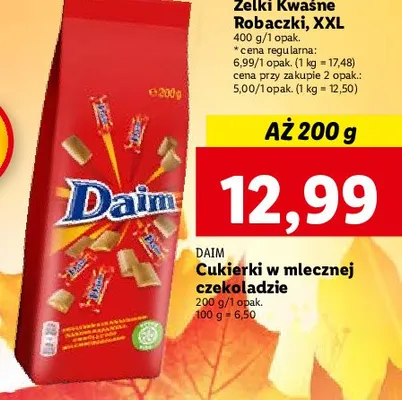 Zastanawiasz si臋, gdzie kupi膰 i ile kosztuje produkt Czekoladki mleczne Daim? Regularnie sprawdzamy, czy jest promocja na ten produkt w Biedronka, Lidl, Kaufland, Auchan, Netto, Makro i innych sklepach. Aktualnie posiadamy 17 ofert promocyjnych na ten produkt. Ceny zaczynaj膮 si臋 od 3,99z艂!