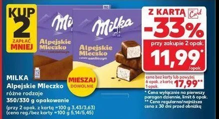 Przegl膮daj podobne oferty promocyjne do Czekoladki waniliowe Milka alpejskie mleczko!