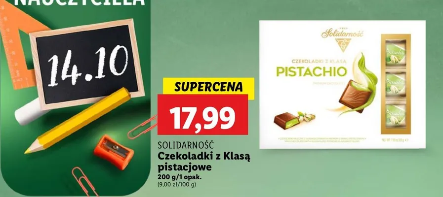 Przegl膮daj oferty promocyjne na produkt Czekoladki z klas膮 pistachio Solidarno艣膰