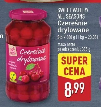 Cena produktu r贸偶ni si臋 w zale偶no艣ci od wybranego sklepu. Niestety nie posiadamy danych o aktualnych promocjach, jednak w艣r贸d archiwalnych ofert Czere艣nie drylowane Sweet valley kosztuje od 6,99 z艂 do 9,49 z艂.