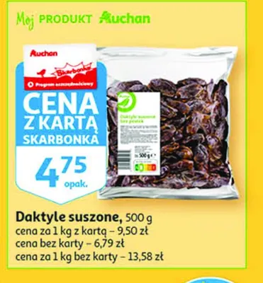 Przegl膮daj podobne oferty promocyjne do Daktyle suszone bez pestek Auchan na co dzie艅 (logo zielone)!