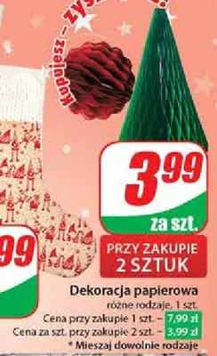 Cena produktu r贸偶ni si臋 w zale偶no艣ci od wybranego sklepu. Niestety nie posiadamy danych o aktualnych promocjach, jednak w艣r贸d archiwalnych ofert Dekoracja papierowa kosztuje od 3,99 z艂 do 7,99 z艂.