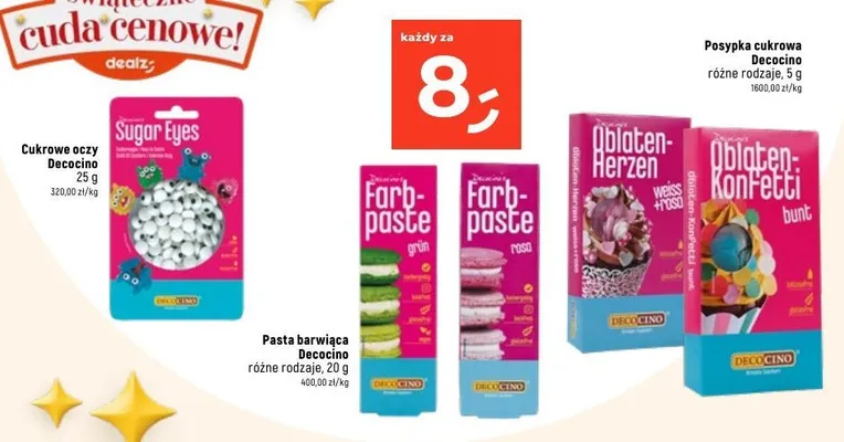 Zastanawiasz si臋, gdzie kupi膰 i ile kosztuje produkt Dekoracje cukrowe w kszta艂cie oczu Decocino? Regularnie sprawdzamy, czy jest promocja na ten produkt w Biedronka, Lidl, Kaufland, Auchan, Netto, Makro i innych sklepach. Aktualnie nie posiadamy ofert promocyjnych na ten produkt.