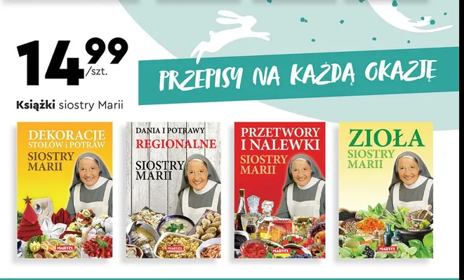 Zastanawiasz si臋, gdzie kupi膰 i ile kosztuje produkt Dekoracje potraw i sto艂贸w siostry marii? Regularnie sprawdzamy, czy jest promocja na ten produkt w Biedronka, Lidl, Kaufland, Auchan, Netto, Makro i innych sklepach. Aktualnie nie posiadamy ofert promocyjnych na ten produkt.