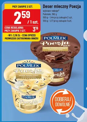 Przegl膮daj oferty promocyjne na produkt Deser mleczny waniliowy z bit膮 艣mietan膮 Polmlek poezja