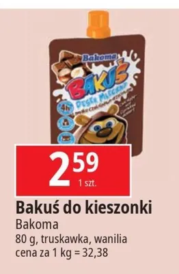 Cena produktu r贸偶ni si臋 w zale偶no艣ci od wybranego sklepu. Niestety nie posiadamy danych o aktualnych promocjach, jednak w艣r贸d archiwalnych ofert Deser waniliowy BAKOMA BAKU艢 DESER MLECZNY Bakoma baku艣 kosztuje od 2,59 z艂.