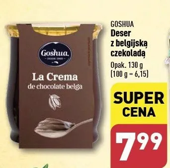 Cena produktu r贸偶ni si臋 w zale偶no艣ci od wybranego sklepu. Niestety nie posiadamy danych o aktualnych promocjach, jednak w艣r贸d archiwalnych ofert Deser z czekolady belgijskiej GOSHUA kosztuje od 6,99 z艂 do 7,99 z艂.
