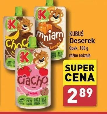Cena produktu r贸偶ni si臋 w zale偶no艣ci od wybranego sklepu. Niestety nie posiadamy danych o aktualnych promocjach, jednak w艣r贸d archiwalnych ofert Deserek o smaku banana ze s艂onym karmelem Kubu艣 mniam! kosztuje od 2,49 z艂 do 2,99 z艂.