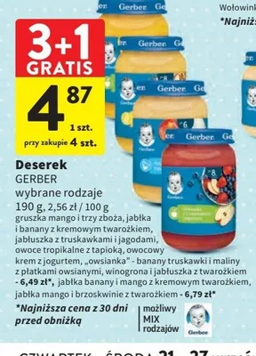 Przeglądaj podobne oferty promocyjne do Deserek winogrona i jabłuszka z twarożkiem Gerber!