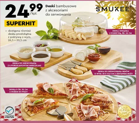 Cena produktu r贸偶ni si臋 w zale偶no艣ci od wybranego sklepu. Produkt Deska bambusowa z no偶em do pizzy Smukee kitchen mo偶esz kupi膰 w promocji ju偶 od 16,99 z艂. Najta艅sza oferta, jak膮 mamy w naszej bazie jest z sieci Auchan. Deska bambusowa z no偶em do pizzy Smukee kitchen kosztuje aktualnie 16,99 z艂. Zobacz ofert臋