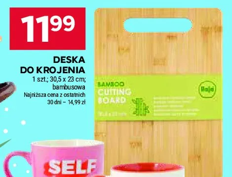 Cena produktu r贸偶ni si臋 w zale偶no艣ci od wybranego sklepu. Produkt Deska do krojenia bambusowa 30.5 x 23 cm mo偶esz kupi膰 w promocji ju偶 od 9,99 z艂. Najta艅sza oferta, jak膮 mamy w naszej bazie jest z sieci Kaufland. Deska do krojenia bambusowa 30.5 x 23 cm kosztuje aktualnie 9,99 z艂. Zobacz ofert臋
