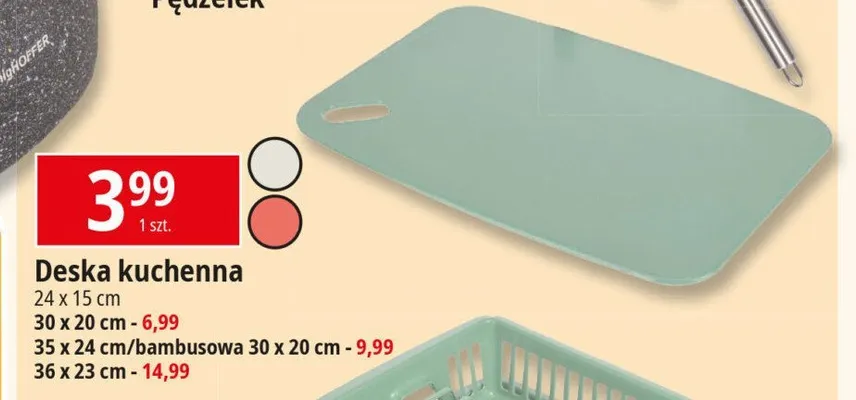Zastanawiasz si臋, gdzie kupi膰 i ile kosztuje produkt Deska kuchenna 30 x 20 cm? Regularnie sprawdzamy, czy jest promocja na ten produkt w Biedronka, Lidl, Kaufland, Auchan, Netto, Makro i innych sklepach. Aktualnie posiadamy 1 ofert臋 promocyjn膮 na ten produkt. Ceny zaczynaj膮 si臋 od 12,99z艂!