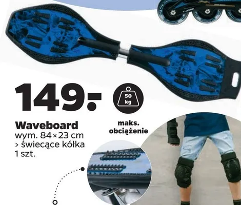 Cena produktu różni się w zależności od wybranego sklepu. Niestety nie posiadamy danych o aktualnych promocjach, jednak wśród archiwalnych ofert Deskorolka waveboard ze świeciącymi kółkami 84 x 23 cm kosztuje od 149 zł.