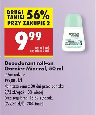 Cena produktu r贸偶ni si臋 w zale偶no艣ci od wybranego sklepu. Niestety nie posiadamy danych o aktualnych promocjach, jednak w艣r贸d archiwalnych ofert Dezodorant black white Garnier mineral invisible kosztuje od 4,99 z艂 do 12,99 z艂.