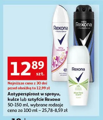 Cena produktu r贸偶ni si臋 w zale偶no艣ci od wybranego sklepu. Niestety nie posiadamy danych o aktualnych promocjach, jednak w艣r贸d archiwalnych ofert Dezodorant cobalt dry Rexona men motionsense kosztuje od 5,99 z艂 do 12,89 z艂.