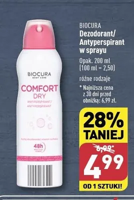 Zastanawiasz si臋, gdzie kupi膰 i ile kosztuje produkt Dezodorant comfort dry Biocura? Regularnie sprawdzamy, czy jest promocja na ten produkt w Biedronka, Lidl, Kaufland, Auchan, Netto, Makro i innych sklepach. Aktualnie nie posiadamy ofert promocyjnych na ten produkt.