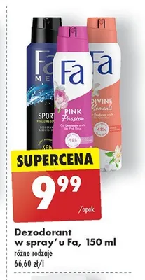 Cena produktu r贸偶ni si臋 w zale偶no艣ci od wybranego sklepu. Niestety nie posiadamy danych o aktualnych promocjach, jednak w艣r贸d archiwalnych ofert Dezodorant Fa divine moments kosztuje od 5,99 z艂 do 9,99 z艂.
