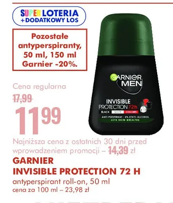 Przegl膮daj podobne oferty promocyjne do Dezodorant invisible protection Garnier men mineral!