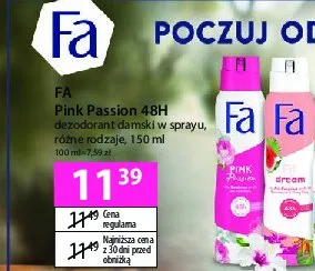 Cena produktu r贸偶ni si臋 w zale偶no艣ci od wybranego sklepu. Niestety nie posiadamy danych o aktualnych promocjach, jednak w艣r贸d archiwalnych ofert Dezodorant lotus-fresh FA LOTUS DREAM kosztuje od 11,39 z艂.