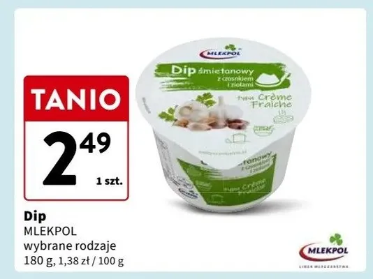 Ile kosztuje Dip 艣mietankowy z czosnkiem i zio艂ami Mlekpol?