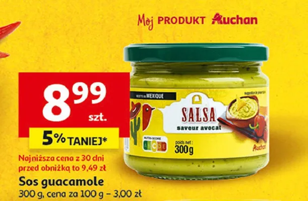 Ile kosztuje Dip typu meksyka艅skiego sosu guacamole Auchan r贸偶norodne (logo czerwone)?