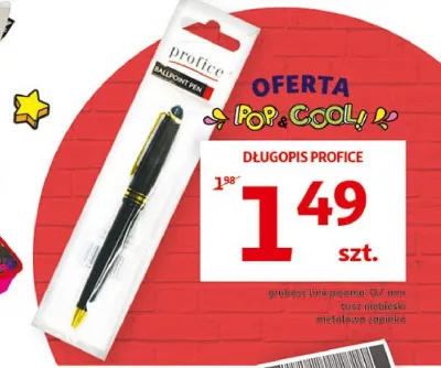 Cena produktu r贸偶ni si臋 w zale偶no艣ci od wybranego sklepu. Niestety nie posiadamy danych o aktualnych promocjach, jednak w艣r贸d archiwalnych ofert D艂ugopis automatyczny Profice kosztuje od 1,49 z艂.