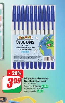 Cena produktu r贸偶ni si臋 w zale偶no艣ci od wybranego sklepu. Niestety nie posiadamy danych o aktualnych promocjach, jednak w艣r贸d archiwalnych ofert D艂ugopisy niebieskie Gryzmaki kosztuje od 3,99 z艂 do 4,49 z艂.