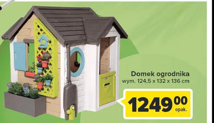 Cena produktu r贸偶ni si臋 w zale偶no艣ci od wybranego sklepu. Niestety nie posiadamy danych o aktualnych promocjach, jednak w艣r贸d archiwalnych ofert Domek ogrodnika garden house Smoby kosztuje od 1249 z艂.