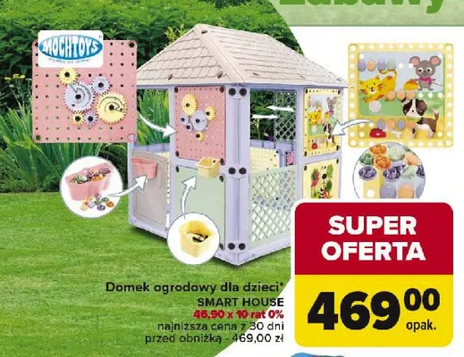 Cena produktu r贸偶ni si臋 w zale偶no艣ci od wybranego sklepu. Niestety nie posiadamy danych o aktualnych promocjach, jednak w艣r贸d archiwalnych ofert Domek ogrodowy smart house kosztuje od 399 z艂 do 469 z艂.