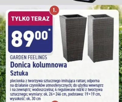 Zastanawiasz si臋, gdzie kupi膰 i ile kosztuje produkt Donica kolumnowa 31 x 31 x 64 cm Garden feelings? Regularnie sprawdzamy, czy jest promocja na ten produkt w Biedronka, Lidl, Kaufland, Auchan, Netto, Makro i innych sklepach. Aktualnie posiadamy 1 ofert臋 promocyjn膮 na ten produkt. Ceny zaczynaj膮 si臋 od 69,99z艂!