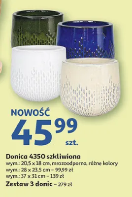Cena produktu r贸偶ni si臋 w zale偶no艣ci od wybranego sklepu. Niestety nie posiadamy danych o aktualnych promocjach, jednak w艣r贸d archiwalnych ofert Donica szkliwiona 4350 20.5 x 18 cm kosztuje od 45,99 z艂.