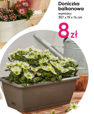 Cena produktu r贸偶ni si臋 w zale偶no艣ci od wybranego sklepu. Niestety nie posiadamy danych o aktualnych promocjach, jednak w艣r贸d archiwalnych ofert Doniczka balkonowa 39.7 x 19 x 14 cm kosztuje od 8 z艂.