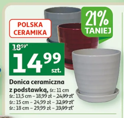 Cena produktu r贸偶ni si臋 w zale偶no艣ci od wybranego sklepu. Niestety nie posiadamy danych o aktualnych promocjach, jednak w艣r贸d archiwalnych ofert Doniczka ceramiczna z podstawk膮 11 cm kosztuje od 14,99 z艂.