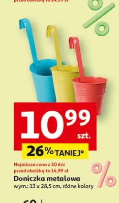 Cena produktu r贸偶ni si臋 w zale偶no艣ci od wybranego sklepu. Niestety nie posiadamy danych o aktualnych promocjach, jednak w艣r贸d archiwalnych ofert Doniczka metalowa 13 x 28.5 cm kosztuje od 10,99 z艂.