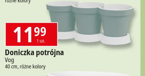 Zastanawiasz si臋, gdzie kupi膰 i ile kosztuje produkt Doniczka potr贸jna na zio艂a 40 x 15 x 15 cm Vog? Regularnie sprawdzamy, czy jest promocja na ten produkt w Biedronka, Lidl, Kaufland, Auchan, Netto, Makro i innych sklepach. Aktualnie posiadamy 2 oferty promocyjne na ten produkt. Ceny zaczynaj膮 si臋 od 4,99z艂!