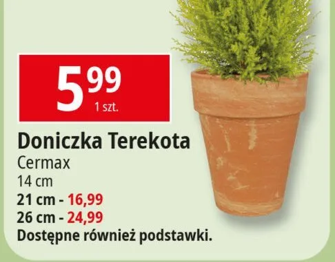 Przegl膮daj podobne oferty promocyjne do Doniczka terakota prosta 21 cm Cermax!