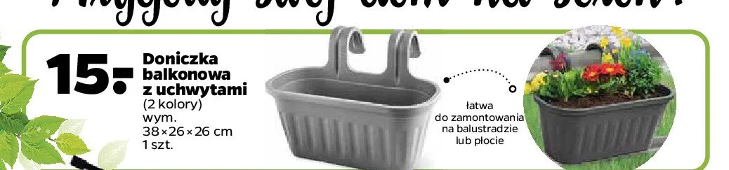 Zastanawiasz si臋, gdzie kupi膰 i ile kosztuje produkt Doniczka z uchwytami 38 x 26 x 26 cm? Regularnie sprawdzamy, czy jest promocja na ten produkt w Biedronka, Lidl, Kaufland, Auchan, Netto, Makro i innych sklepach. Aktualnie nie posiadamy ofert promocyjnych na ten produkt.
