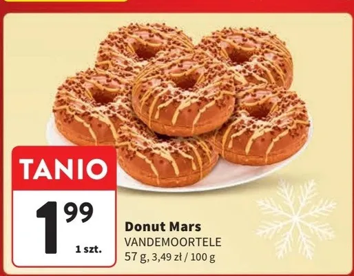 Cena produktu r贸偶ni si臋 w zale偶no艣ci od wybranego sklepu. Niestety nie posiadamy danych o aktualnych promocjach, jednak w艣r贸d archiwalnych ofert Donut mars Vandemoortele kosztuje od 1,99 z艂.
