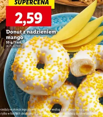 Cena produktu r贸偶ni si臋 w zale偶no艣ci od wybranego sklepu. Niestety nie posiadamy danych o aktualnych promocjach, jednak w艣r贸d archiwalnych ofert Donut z nadzieniem mango kosztuje od 1,99 z艂 do 2,59 z艂.