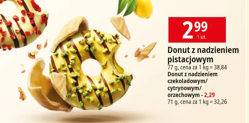 Cena produktu r贸偶ni si臋 w zale偶no艣ci od wybranego sklepu. Niestety nie posiadamy danych o aktualnych promocjach, jednak w艣r贸d archiwalnych ofert Donut z nadzieniem orzechowym La lorraine kosztuje od 2,29 z艂.