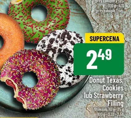 Cena produktu r贸偶ni si臋 w zale偶no艣ci od wybranego sklepu. Niestety nie posiadamy danych o aktualnych promocjach, jednak w艣r贸d archiwalnych ofert Donut z nadzieniem truskawkowym Stokson kosztuje od 1,49 z艂 do 2,49 z艂.