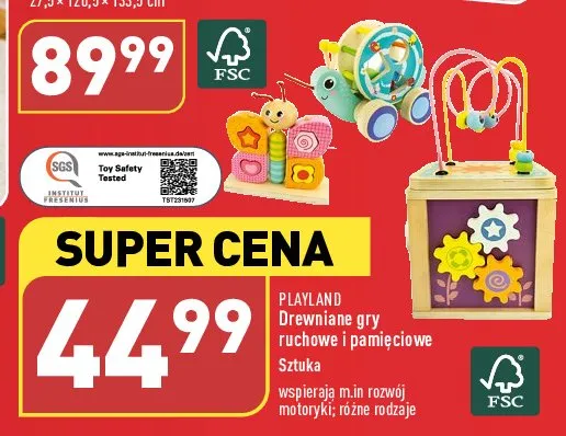 Cena produktu r贸偶ni si臋 w zale偶no艣ci od wybranego sklepu. Niestety nie posiadamy danych o aktualnych promocjach, jednak w艣r贸d archiwalnych ofert Drewniana gra pami臋ciowa Playland kosztuje od 44,99 z艂.