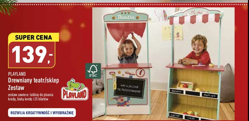 Zastanawiasz si臋, gdzie kupi膰 i ile kosztuje produkt Drewniany teatr Playland? Regularnie sprawdzamy, czy jest promocja na ten produkt w Biedronka, Lidl, Kaufland, Auchan, Netto, Makro i innych sklepach. Aktualnie nie posiadamy ofert promocyjnych na ten produkt.