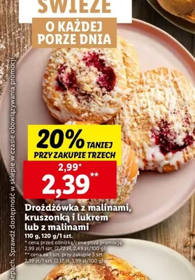 Cena produktu różni się w zależności od wybranego sklepu. Niestety nie posiadamy danych o aktualnych promocjach, jednak wśród archiwalnych ofert Drożdżówka z kruszanką i lukrem kosztuje od 1,99 zł do 2,39 zł.
