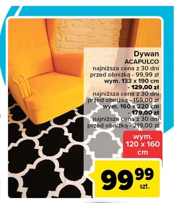 Dywan acapulco 133 x 190 cm aktualnie nie wyst臋puje w bazie naszych gazetek promocyjnych. Nie martw si臋! Gdy tylko pojawi si臋 ciekawa promocja na Dywan acapulco 133 x 190 cm, umie艣cimy j膮 na naszej stronie